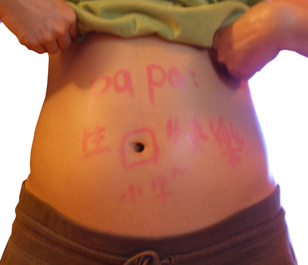 星期二阿賢叔叔又收到老闆任性的要求,要拍一些同事的照片,當時媽媽在忙,被催了幾次後,很不情願的去拍照,後來突然想到,這是我懷孕後第一次拍照,第一張跟小牛的合照ㄟ^^於是就很開心的跟阿賢叔叔鬧起來,鬍子賢也很有誠意地誇大頭妹我真的散發著孕味的美麗,呵~突起的小肚肚,一PO到MSN上,大家也都說我肚子很大勒,不過呢!任性的老闆竟然嫌放在簡報上的肚子照片不夠大,硬要動點手腳,人家小牛就只有4個月阿,真是愛搞怪的老頭。